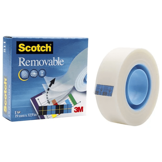 Odstranljivi nevidni lepilni trak je možno odstraniti s podlage brez posledic. Postopek je mogoče večkrat ponoviti. Širina: 19mm Dolžina: 33m