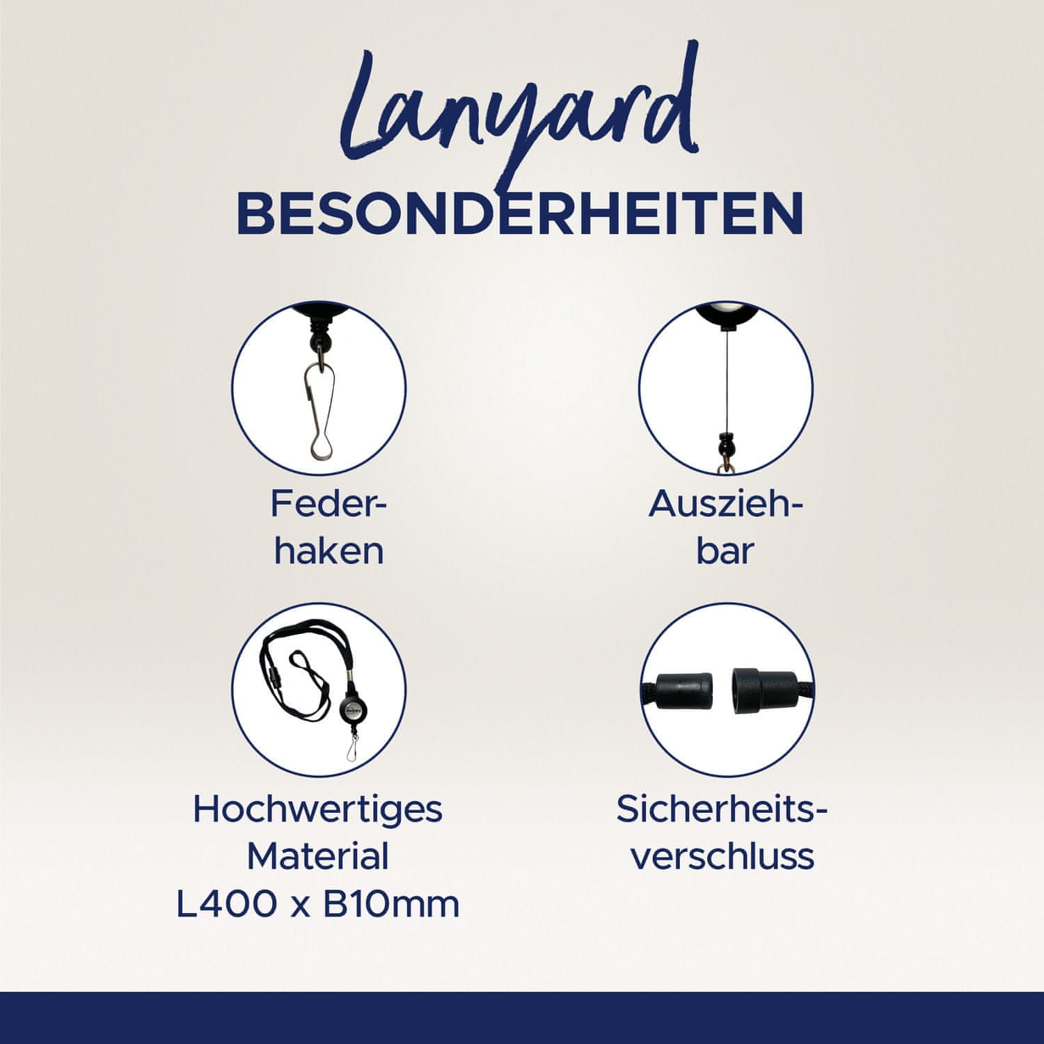 Avery Zweckform trakovi z zaponko in izvlečno vrvico 4830 so odlični za konference, seminarje in druge poslovne ali zasebne dogodke. Trakovi so črne barve, široki 8 mm, dolgi 400 mm in imajo praktičnen 60-centimetrski navijalni kolut z izvlečno vrvico. V zavitku je 10 trakov in navijalnih mehanizmov. Trakovi so mehki na otip in imajo varnostno zaponko, ki se odpre v primeru prevelike obremenitve. Vrtljiv kaveljček omogoča enostavno pripenjanje identifikacijskih kartic. V ponudbi so različne barve in vzorci trakov.