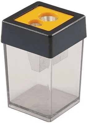 dvojni šilček z rezili iz kakovostnega jekla šiljenje barvic in svinčnikov do 8 mm z manjšim in 8 mm – 10,5 mm z večjim šilčkom ostanki šiljenja se zbirajo v večji prozorni posodici preprosto praznjenje