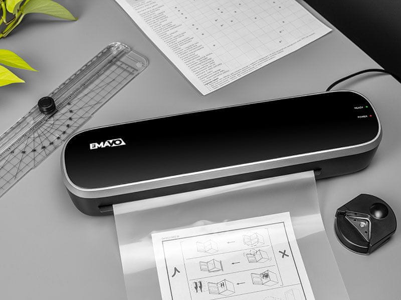 Hitro laminiranje Emavo je segret in pripravljen za uporabo že v 3 minutah. Laminira s hitrostjo 30 cm/min, zato je celoten postopek hiter, vaši dokumenti pa so v hipu varni.