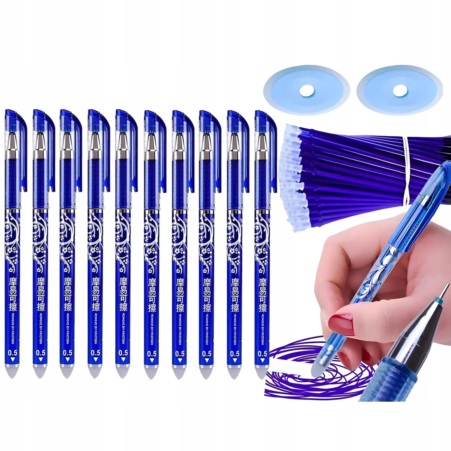 12-delni komplet izbrisljivih kemičnih svinčnikov 2 radirki + 20 kosov polnila