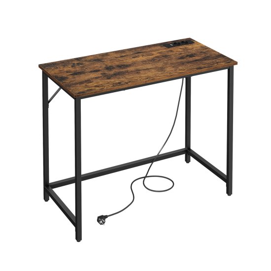shumee Igralna pisarniška miza z LED lučmi, razdelilnik, računalniška miza, 50 x 100 x 76, prihranek prostora, za študijsko sobo, domačo pisarno, vintage rjavo in črno črnilo LWD141B81