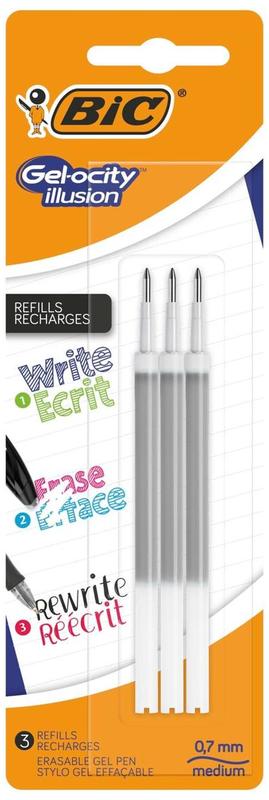 3 polnila za gel pisalo ILLUSION GEL-OCITY, črna, 0,7 MM, BIC