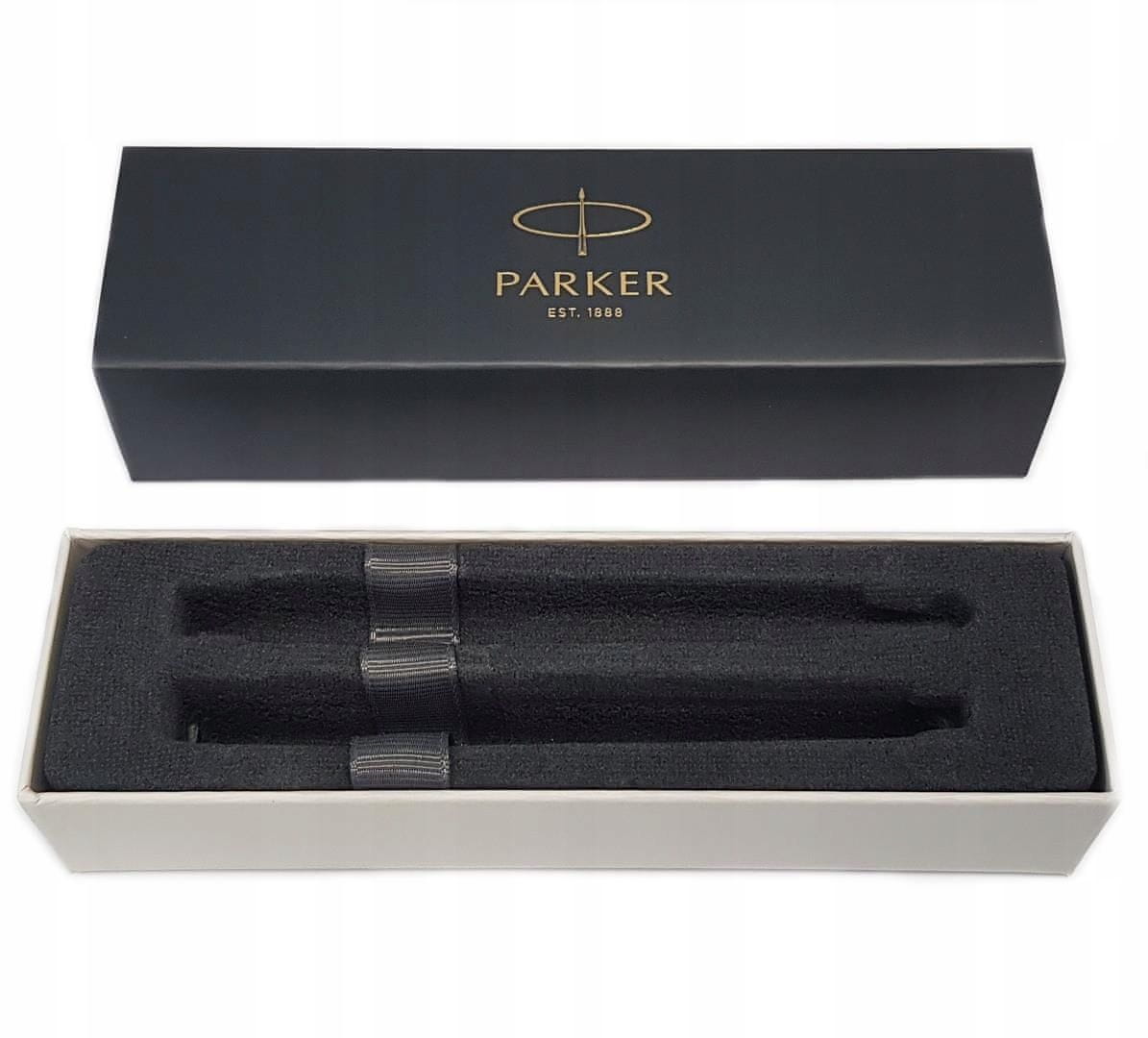 Eleganten darilni komplet, ki ga sestavljajo: pisalo in mehanski svinčnik (z mehanizmom za izmet mine na gumb) znamke Parker. Oba pisalna pripomočka sta izdelana iz brušenega jekla s kromiranim zaključkom (kromirane sponke). Izdelki iz kolekcije Jotter že več kot 60 let veljajo za ikone oblikovanja in so najbolj priljubljeni modeli blagovne znamke Parker. Komplet bi bil idealno luksuzno darilo.