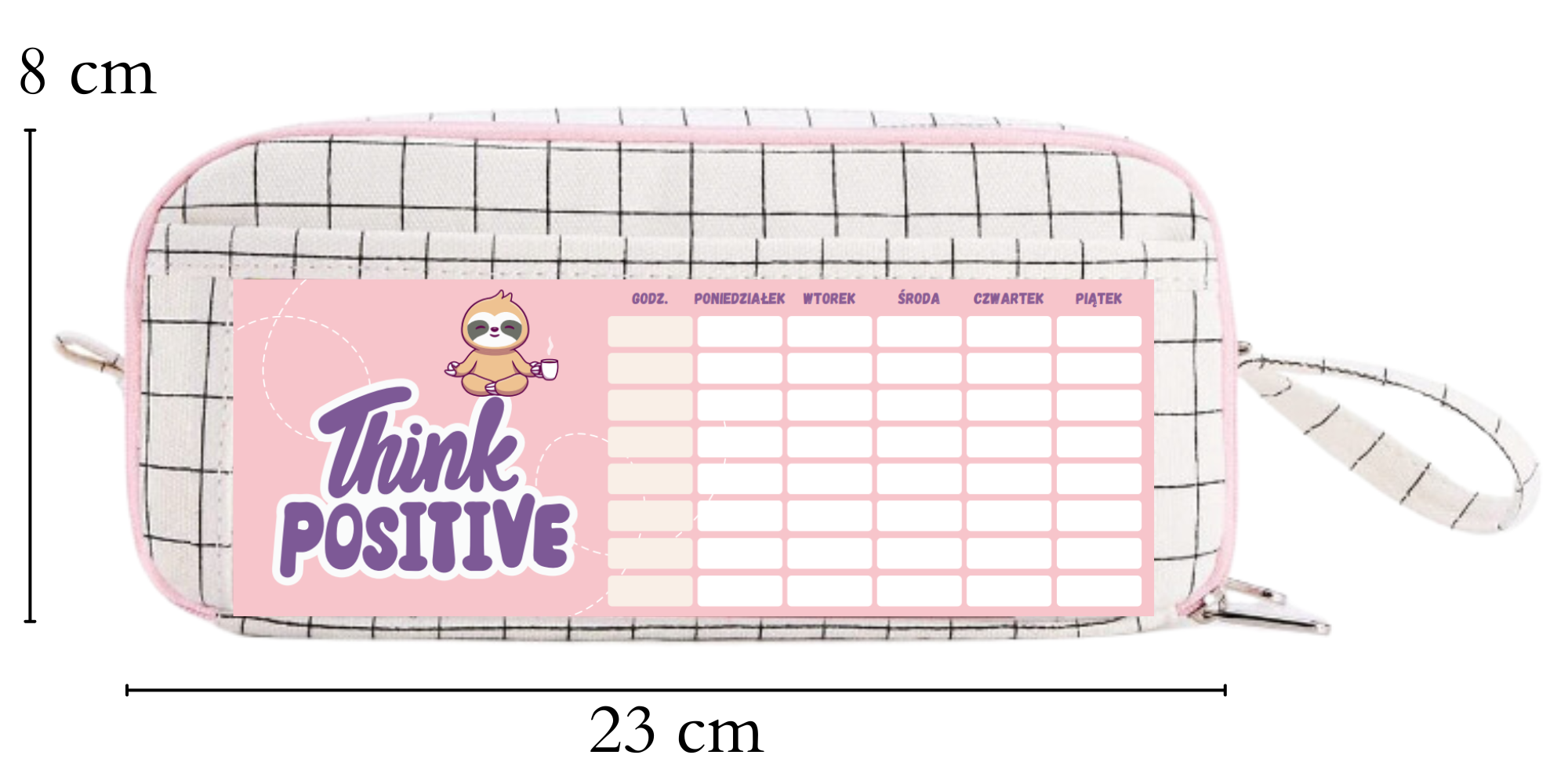 Predstavljamo vam edinstveno šolsko peresnico s karirastim vzorcem, okrašeno z očarljivim motivom lenivca, ki je popoln dodatek k vsakemu šolskemu priboru. Ta funkcionalna in estetsko privlačna peresnica je bila zasnovana z mislijo na potrebe mlajših in starejših učencev. Izdelana je iz visokokakovostnih materialov, je trpežna in odporna na vsakodnevno obrabo. Peresnica ima načrt učne ure, ki poenostavi organizacijo šole, vam pomaga ostati organizirani in zagotavlja enostaven dostop do bistvenih potrebščin. Prostorna notranjost omogoča organizirano shranjevanje različnih pisalnih potrebščin, kot so pisala, svinčniki, radirke in šilčki. Edinstven karirasti vzorec z motivom lenivca doda edinstven značaj, ki bo zagotovo všeč vsakemu ljubitelju teh ljubkih živali. Ni le praktična, ampak tudi moden dodatek, ki bo učenje naredil bolj prijetno. Priporočamo vam nakup te neverjetno funkcionalne in elegantne peresnice, ki bo popolnoma ustrezala potrebam vsakega učenca, ki si prizadeva za organizirano in učinkovito učenje.