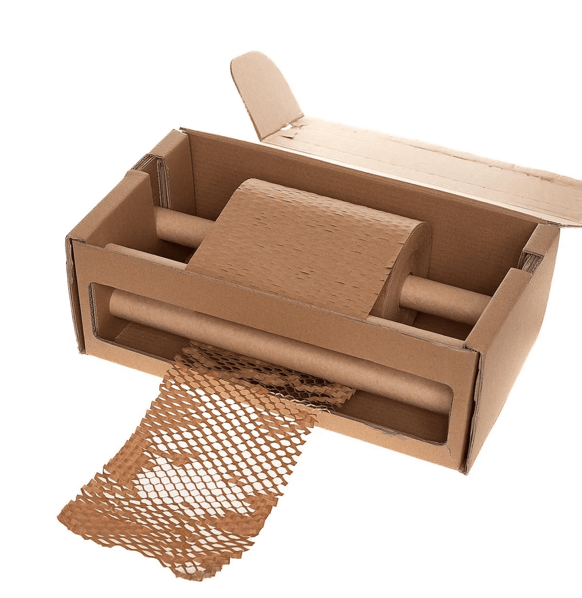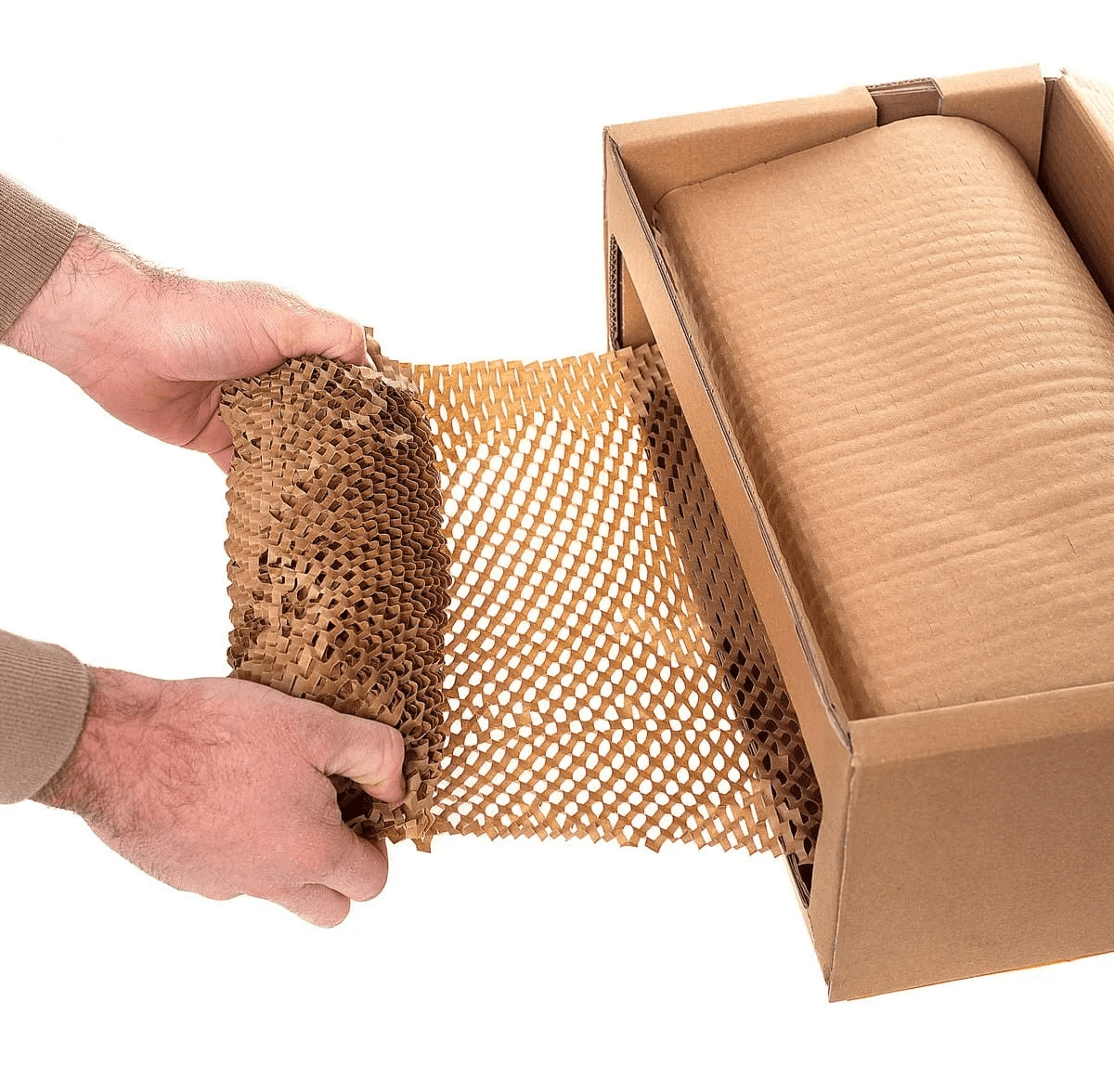 Podajalec za zaščitni ovojni papir zarezan v obliki 3D satja. Papir ni vključen