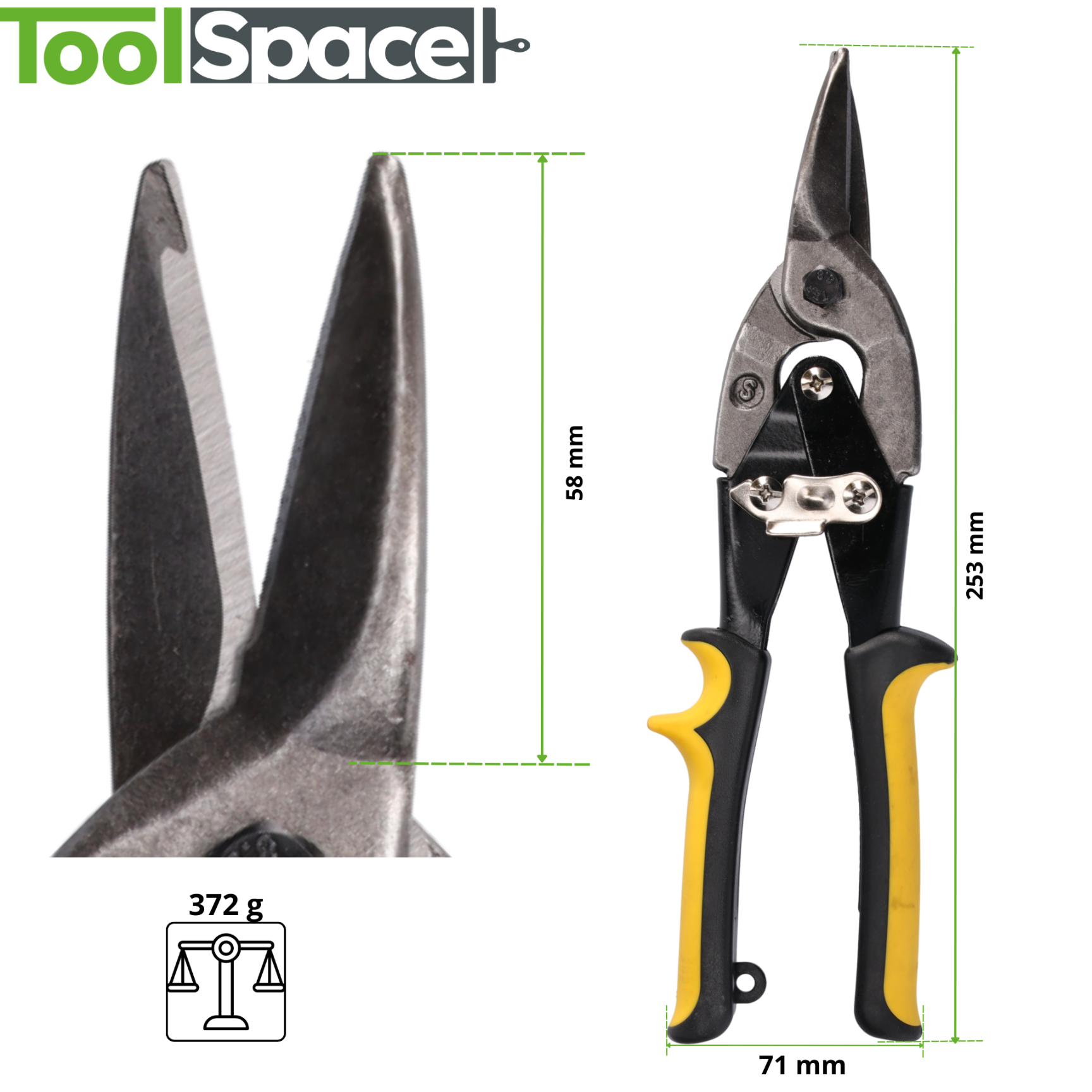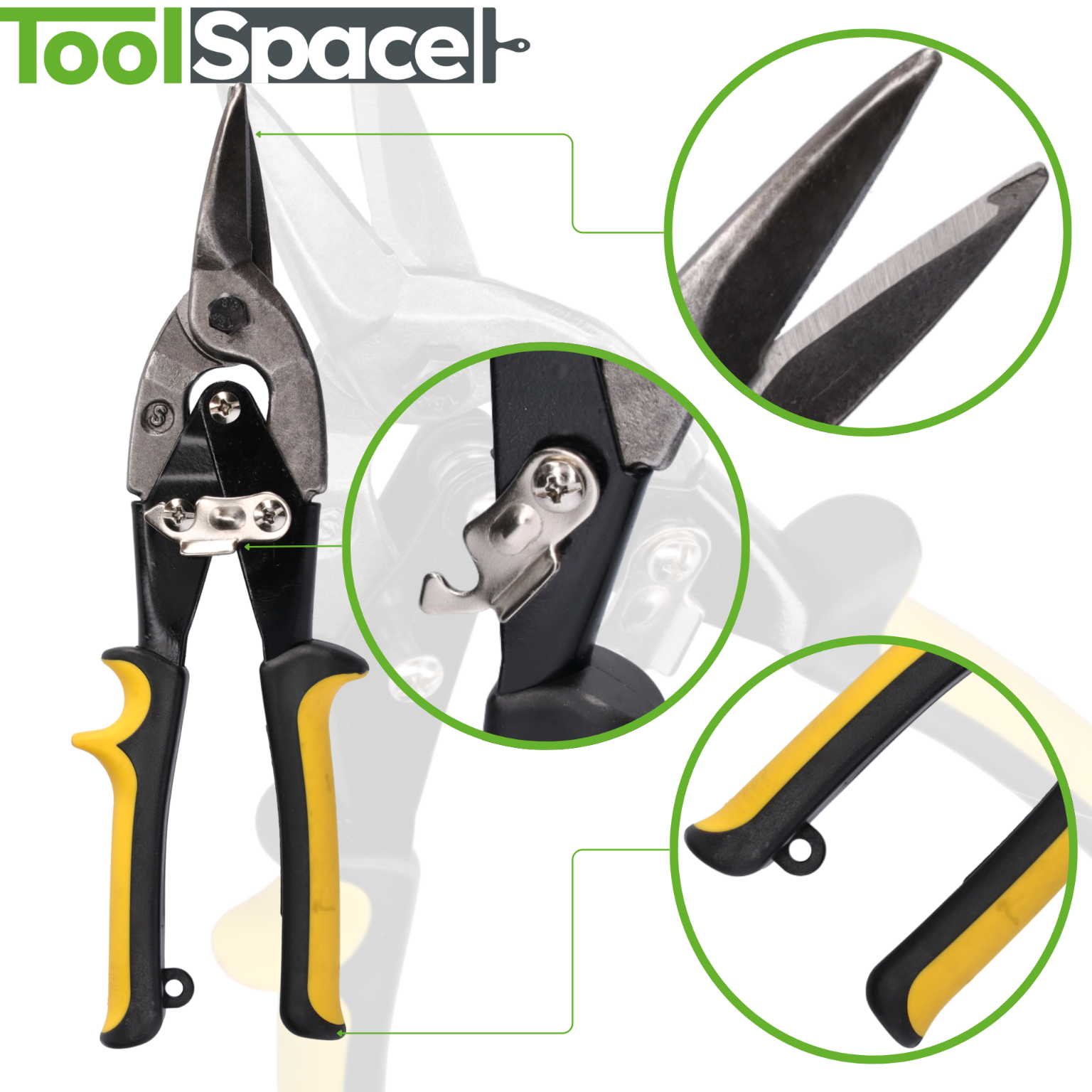 Trpežne škarje za pločevino podjetja ToolSpace®, priročne – 250 mm z rezilom 60 mm in trpežne – rezilo škarij je izdelano iz trpežnega ogljikovega jekla , odpornega na praske, razpoke in druge poškodbe mehanske poškodbe.