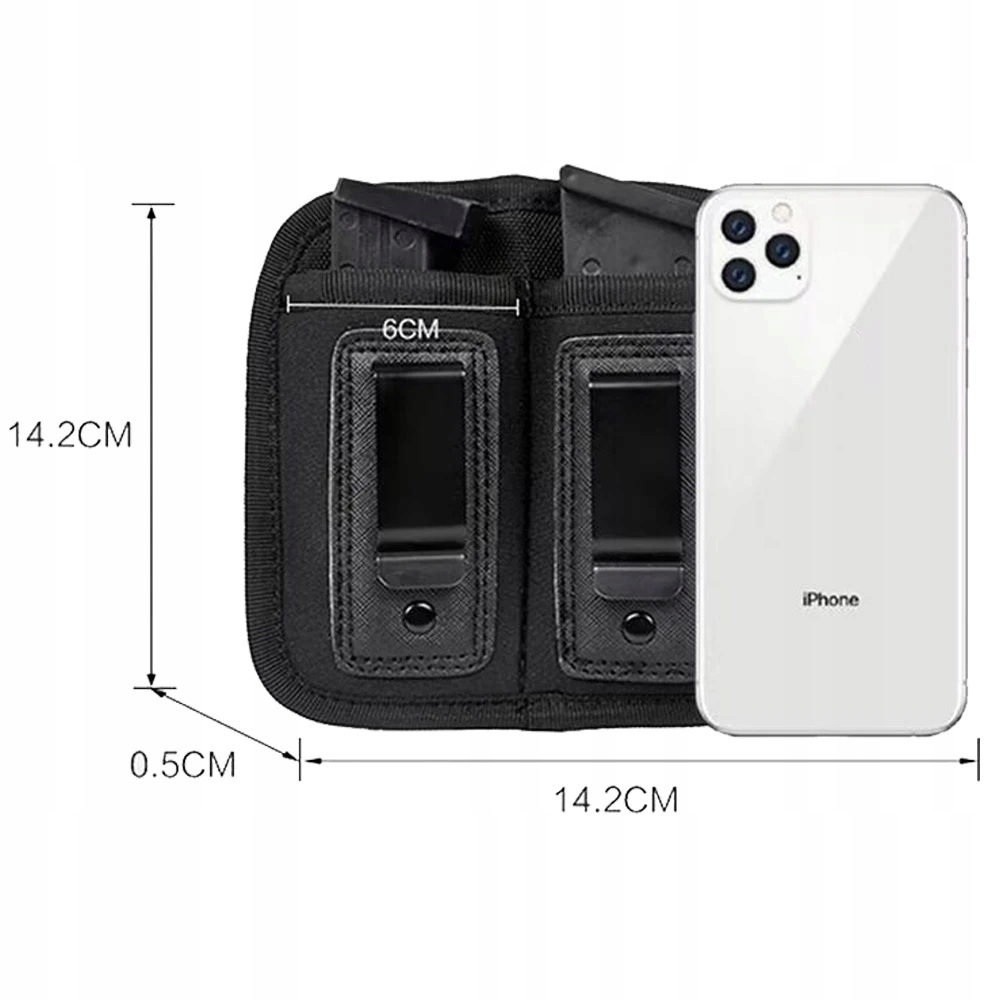 - Prilagodljiva združljivost: Dimenzije (približno 14,2 cm x 14,2 cm) omogočajo shranjevanje nabojnikov za priljubljeno strelno orožje, vključno z Glock 19, 21, 22, 23, Ruger SR40 in Beretto.