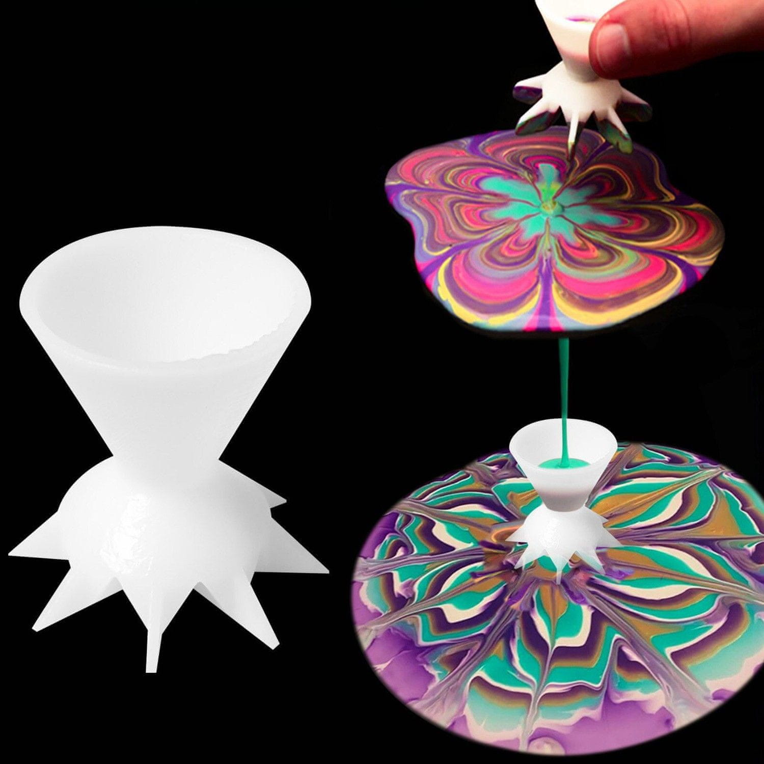 S tem orodjem za izlivanje lahko ustvarite fantastične akrilne slike v abstraktnem slogu. Orodje je narejeno iz trpežne plastike in se enostavno napolni z akrilno barvo v različnih odtenkih. Barva se nato razporedi v edinstven in privlačen vzorec po platnu.