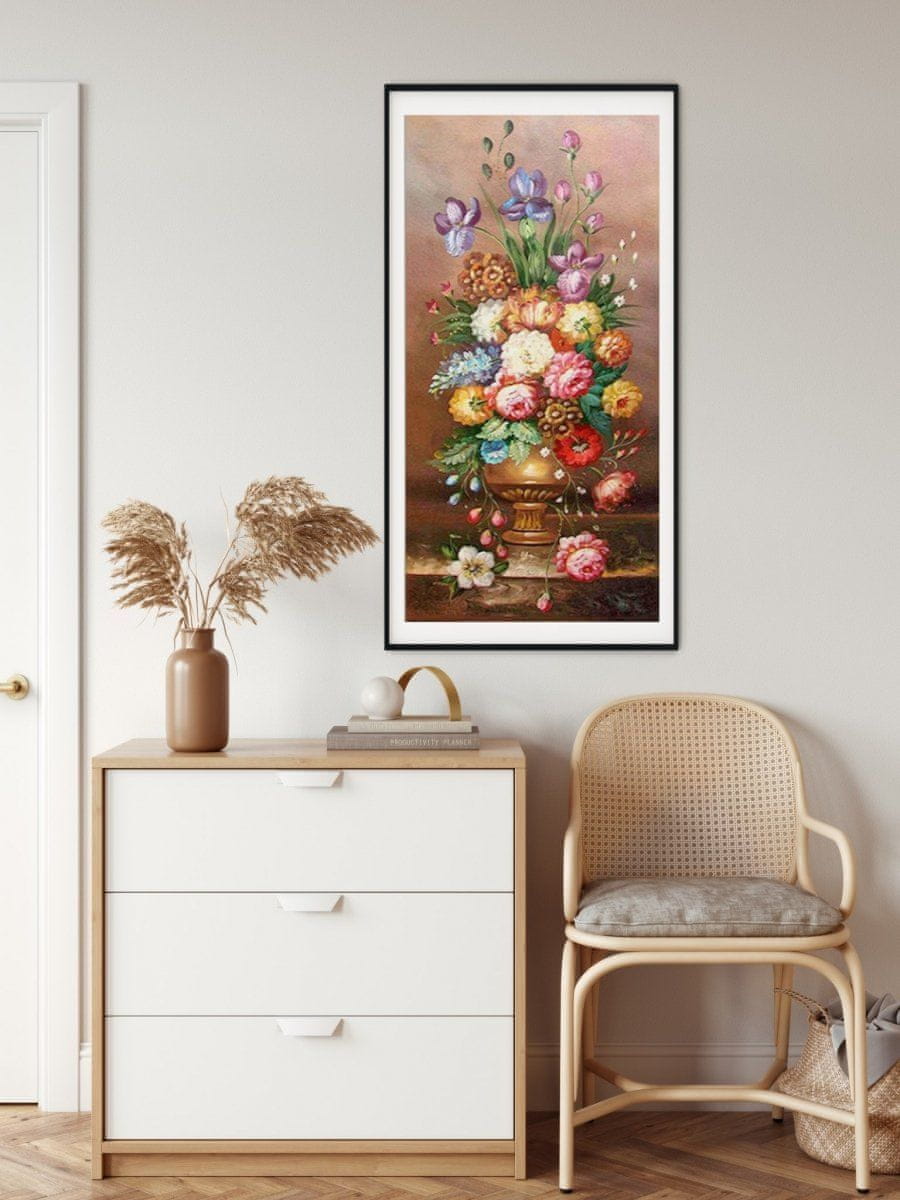 Diamantno vezenje Cvetlična kompozicija 45×85 cm Celoten opis