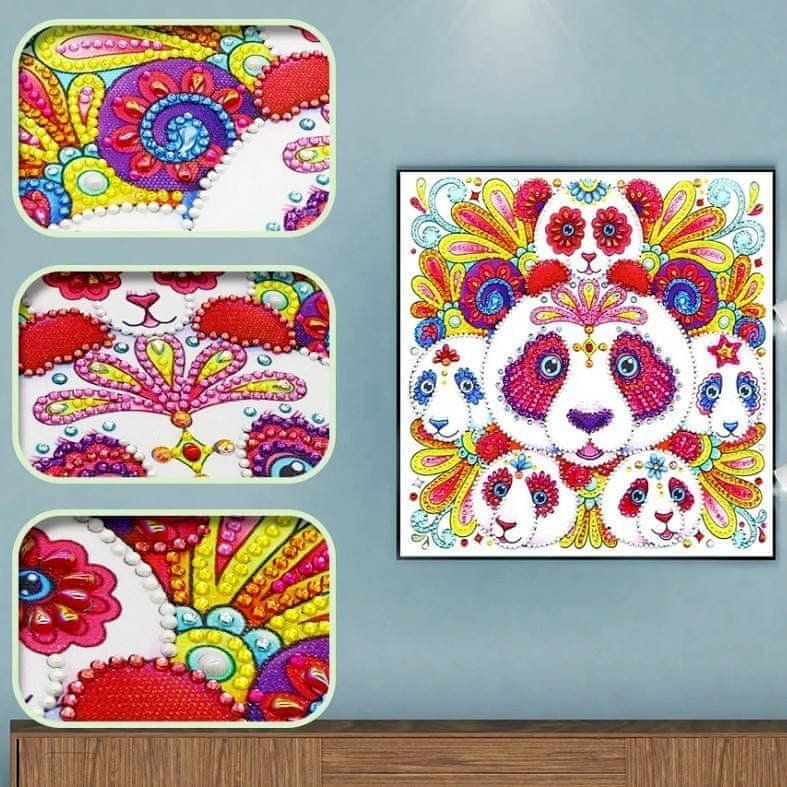 Diamantno vezenje Pisane pande 30×30 cm Celoten opis