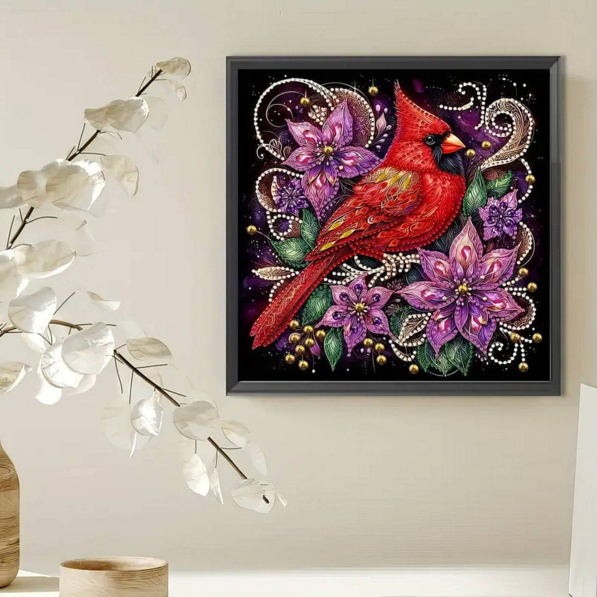 Diamantno vezenje Ruby Bird 30×30 cm Celoten opis