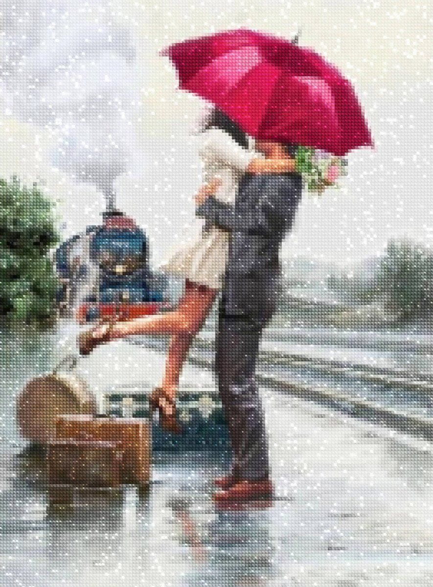 Diamantno vezenje Zaljubljeni par postaja 45×60 cm K Celoten opis