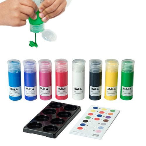 • Komplet vsebuje 6 barv: titanovo belo, limonino rumeno, srednje alizarin, imitacijo kobalta, temno zeleno in črno