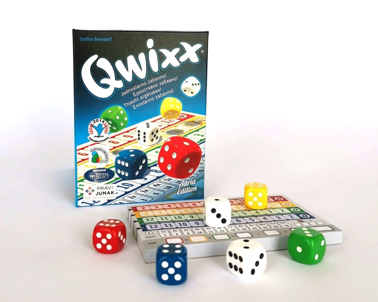 Qwixx je zabavna družabna igra s kockami, igra hitrih potez, malo sreče, visoke napetosti in brez čakanja na potezo! Najboljša uvertura v „Roll & Write“ igre s kockami!