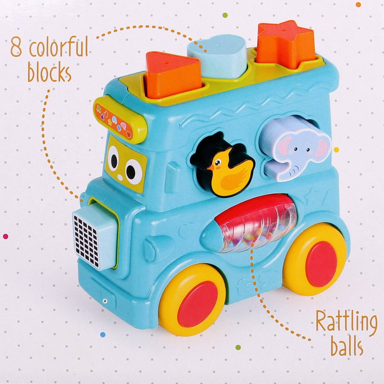 Met de sorteermachine leert het kind vormen, kleuren en nieuwe geluiden herkennen, wat de verbeelding stimuleert en de oog-handcoördinatie ontwikkelt.