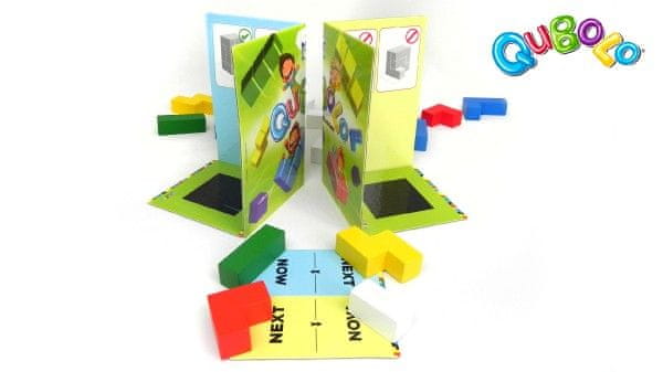 Taktična igra z lesenimi kockami za vse od 5. leta dalje! Kdo bo prvi dokončal svoj stolp? Lahko nasprotniku otežite gradnjo? QUBOLO združuje tetris z malo pokra in zagotavlja odlično zabavo! Qubolo sestavlja stolp iz lesenih kock. Vsak graditelj določi kos, s katerim bo nasprotnik gradil v naslednjem krogu. Igralci zgradijo vsak svoj stolp, ne da bi videli nasprotnikovo gradnjo! Kdor prvi uspe dokončati gradnjo, je zmagovalec. Enostavna pravila, odlična zabava. 3D sestavljanka za 1–2 igralca: ali 4, če imate dva kompleta igralnih elementov. Približni čas igranja je 10 minut. Primerno za otroke od 5. leta starosti dalje.