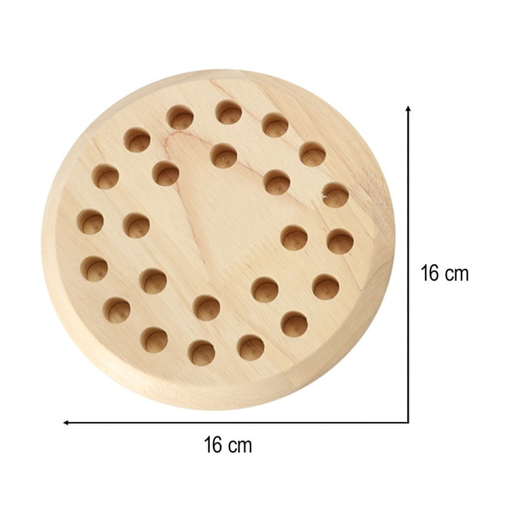 Ta lesena sestavljanka je odlična različica klasične igre spomin, zasnovana za urjenje koncentracije, vizualnega pomnjenja in fine motorike. Barvni leseni peški, okrogla podlaga in kocka ustvarjajo zabavno, poučno in trajnostno igro za otroke vseh starosti.