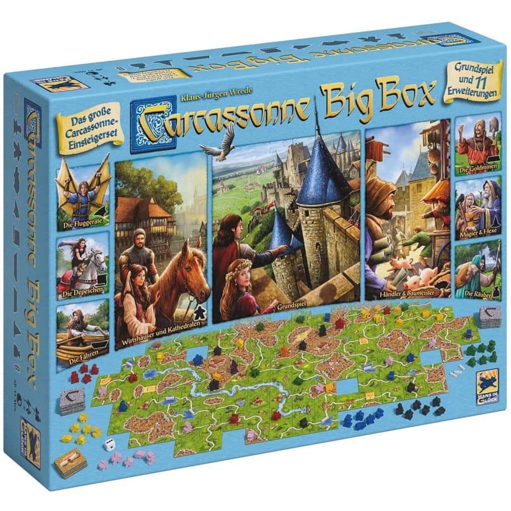 Družabna igra Carcassonne je zimzelena klasika, s katero se slej ko prej sreča vsak ljubitelj družabnih iger. Carcassonne Big Box pa je ultimativna izdaja te zdaj že legendarne namizne igre, popolna izbira za ljubitelje zlaganja srednjeveških mest, podeželja in cest v okolici idiličnega mesteca Carcassonne.