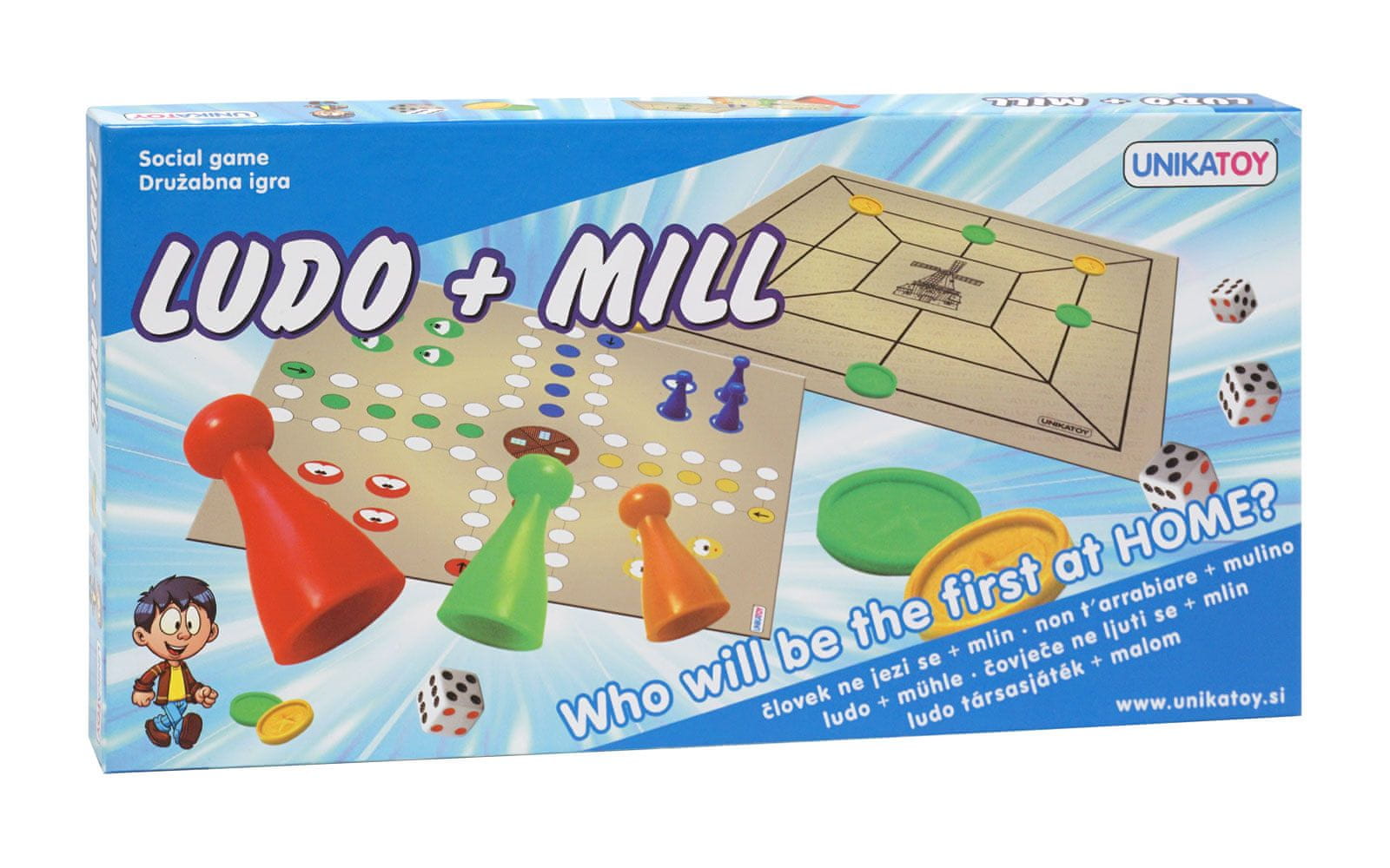 Dve igri v eni – družabni igri človek ne jezi se ter mlin. Celoten opis