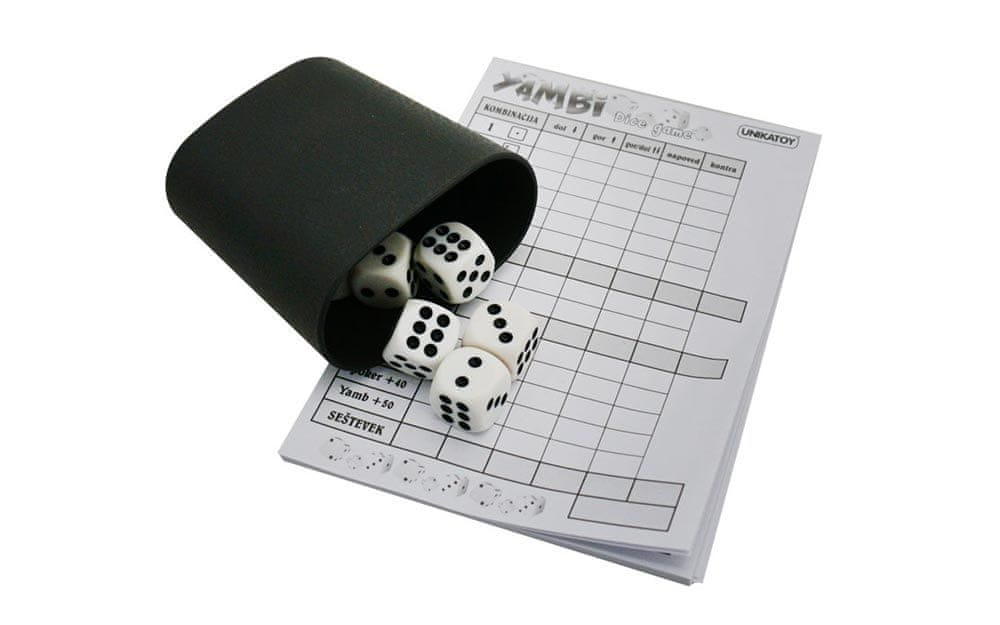 Družabna igra Yambi s kockami za dva ali več igralcev. Celoten opis
