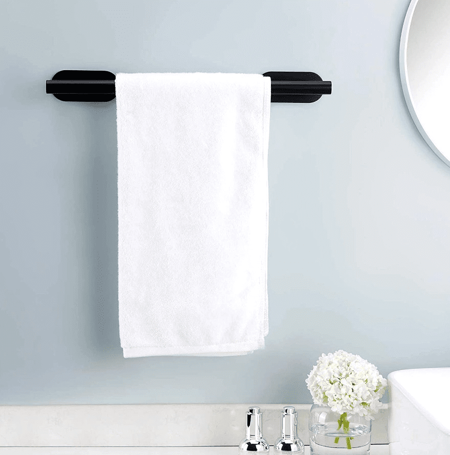 Samolepilni nosilec za brisače v elegantni mat črni barvi je praktičen dodatek za vašo kopalnico ali kuhinjo. Izdelan iz robustne nerjaveče jekla, zagotavlja dolgo življenjsko dobo in odpornost proti vlagi. Zaradi enostavne namestitve s pomočjo montažne trakove lahko nosilec postavite brez vrtanja lukenj, kar prihrani čas in olajša njegovo premikanje. S dimenzijami 40 × 8,5 × 10 cm se prilega različnim prostorom v domu, vključno z garažo ali otroško sobo.