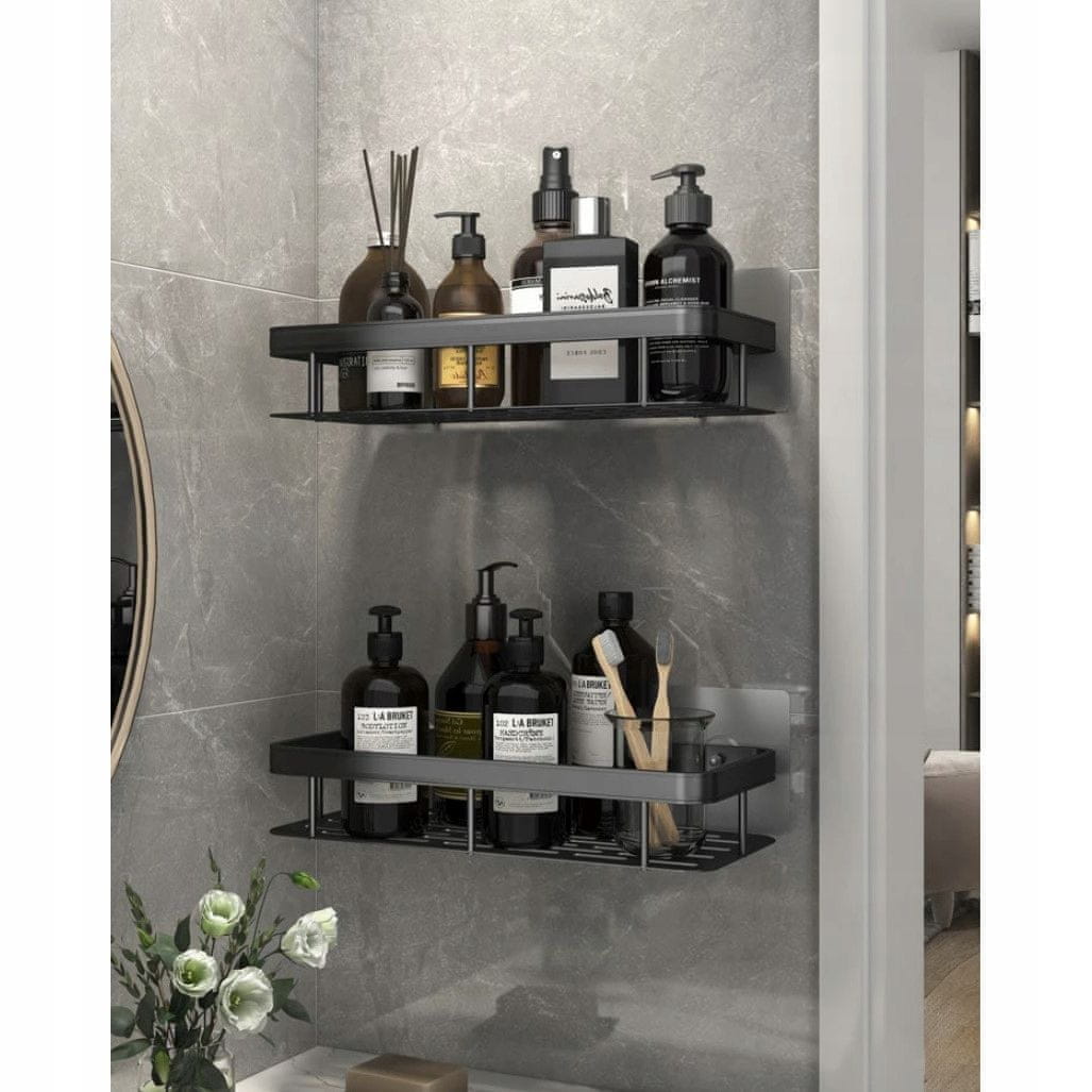 Za udobno in elegantno organizacijo vaše kopalnice izberite naše 2× Kopalniške Aluminijaste Police v črni barvi, ki združujejo funkcionalnost, stil in vzdržljivost.