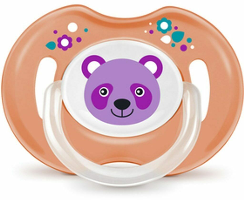 Roza medvedek na oranžni podlagi ščita ortodontskega dude BAYBY bo postal prijatelj dojenčkov med tretjim in šestim mesecem.