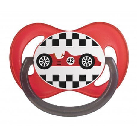 Canpol babies Dudka 18 m+ silikonska, simetrična Auta, rdeča