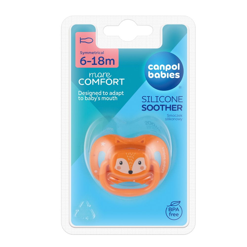 Canpol babies Simetrični silikonski dudelec Simpatične živali 6-18m 1 kos oranžna