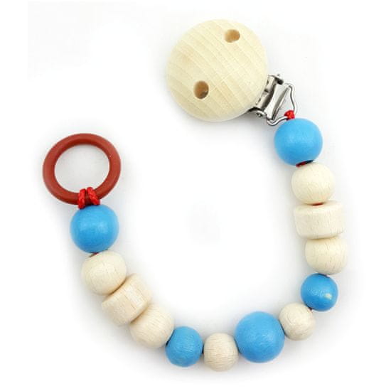 Verižica s kovinsko sponko in univerzalnim prilagodljivim silikonskim obročkom za pritrditev dude. Visokokakovostna obdelava in nestrupene barve so odporne na slino in znoj. Izdelana je v Nemčiji iz lesa iz nemških gozdov. Glavne značilnosti:univerzalni silikonski obročekpraktična kovinska sponkatrpežna in okolju prijazna obdelava