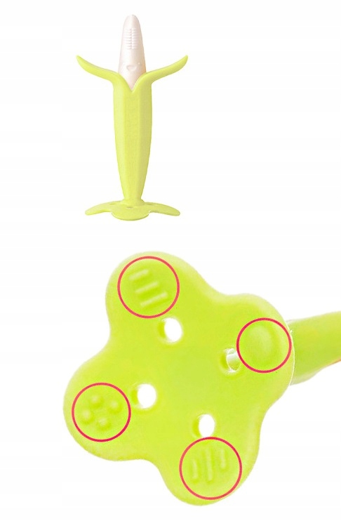 Izdelana iz varnega in prožnega silikona, primernega za živila, nežno pomirja boleče izraščanje zob z masiranjem dlesni vašega malčka, hkrati pa razvija dobre higienske navade.