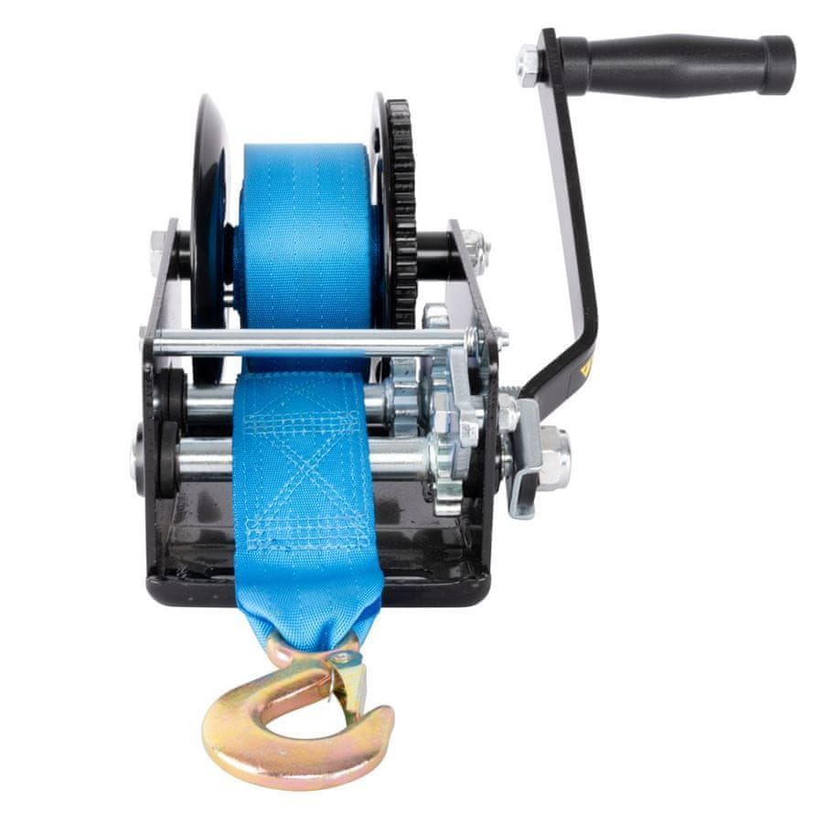 Opremljen je z 8-metrskim poliestrskim pasom širine 5 cm, ki omogoča varno in učinkovito premikanje tovora. Tovorni kavelj z odprtino v obliki kapljice poskrbi za zanesljivo pritrditev tovora. Vgrajen zaporni vzvod in ročica z mehkim oprijemom omogočata udobno in varno upravljanje.