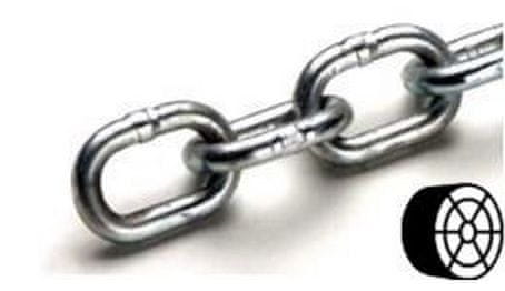 Visoko trdna veriga s poldolgimi členi (varjenimi, nepreverjenimi) z belim cinkovim zaključkom. Trdnostni razred 4,6 z nosilnostjo 70 kg.
