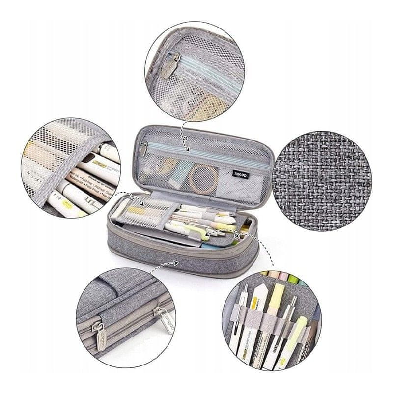 Elegantna granatna barva daje etuiju sofisticiran videz, kar ga naredi za idealen dodatek tako za študente kot tudi za strokovnjake. Ta večnamenski izdelek lahko uporabite ne samo kot etui, ampak tudi kot kozmetično torbico, ki pomaga ohranjati vaše nujne stvari dobro organizirane in na dosegu roke.