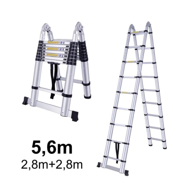 MXM 2v1 teleskopske pregibne lestve / dvokrake - 5,6 m, aluminijaste