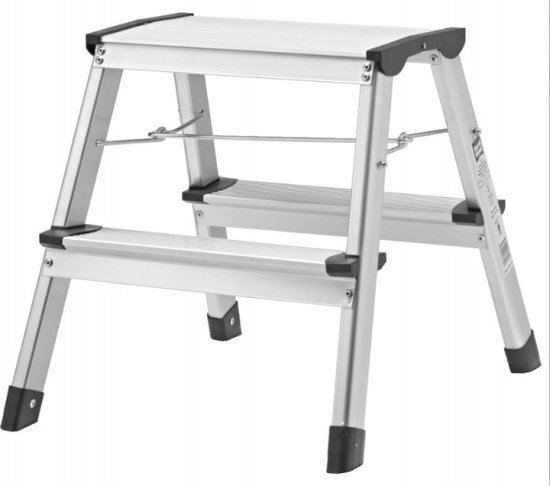 Lestev, Delovna ploščad s trdo glavo Zložljiva 2 stopnici Izdelek iz aluminija Maks. obremenitev: 150 kg Širina: 40,5 cm Višina: 40 cm Dimenzije: Širina 40,5 x V 40 cm Zložljiv stolček z dvema stopnicama. Izdelek iz aluminija.