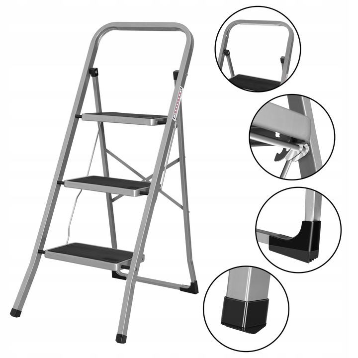 Naša 3-stopenjska jeklena lestev je nenadomestljivo orodje , ki bi moralo biti v vsakem domu . Zagotovo vam bo všeč, medtem ko boste opravljali obnovitvena dela in opravljali gospodinjska opravila .