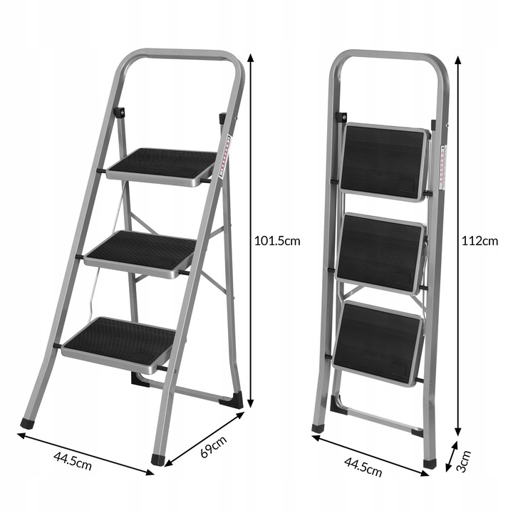 Dimenzije razgrnjene lestve: 44,5 × 69 × 101,5 cm