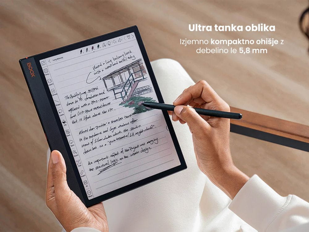 | Upravljanje: | BOOX Pen Plus ali Pen2 Pro magnetno stylus pisalo (4096 stopenj občutljivosti na pritisk) + kapacitivno upravljanje na dotik |