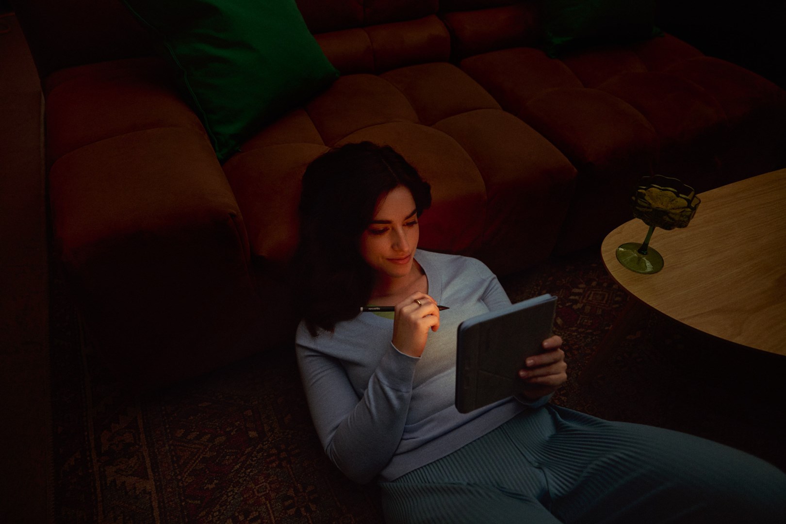 Okrasite svoje izmišljene in resnične svetove z barvami. Pomirjujoča barvna paleta 7-palčnega zaslona E Ink Kaleido™ 3 bo oživila vaš bralni svet. Platnice knjig, ilustracije, zapiski in drugo oživijo z barvami. Brez bleščanja sončne svetlobe ali motečih obvestil – samo vi in vaša barvita knjiga.