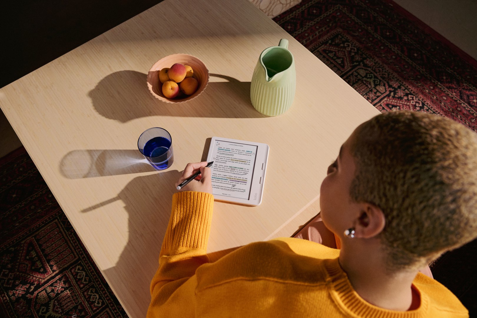 Predstavljamo vam najbolj navdihujoč e-bralnik doslej: novi Kobo Libra Color. Robove svojih knjig napolnite s čarobnostjo tako, da dodajate zapiske, organizirate svoje misli in označite navdihujoče citate – zdaj v barvah. Poglobite se v svoje najljubše zgodbe, označite pomembne trenutke in podčrtajte pomembne citate z združljivim pisalom Kobo Stylus 2.