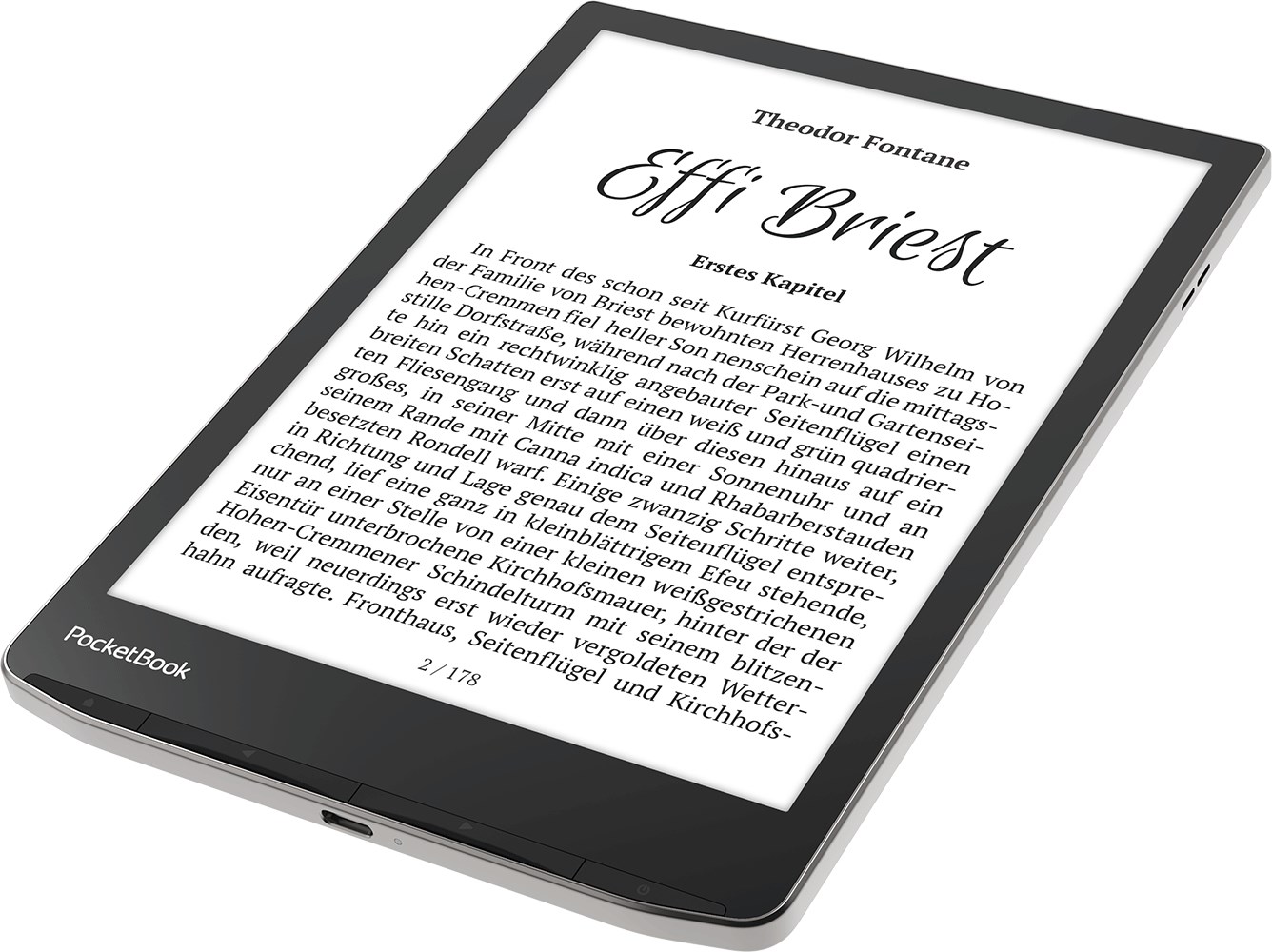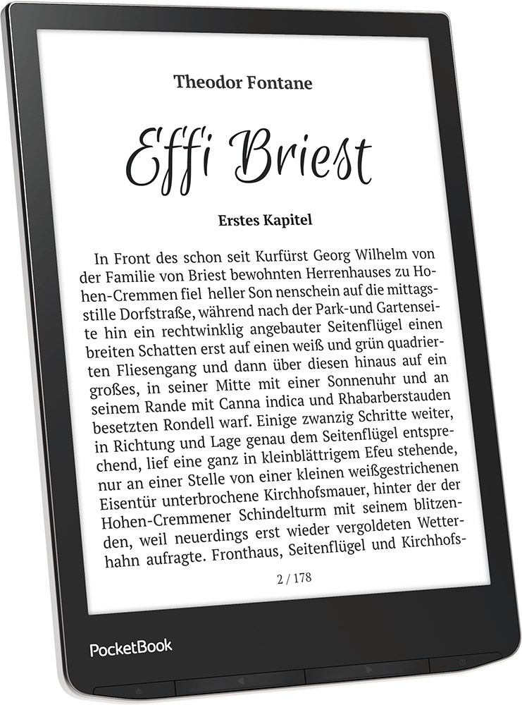 Eden najbolj priljubljenih e-bralnikov v novi izdaji To je četrta izdaja dobro znanega e-bralnika PocketBook InkPad. Najnovejši model se odlikuje z robustnejšo konstrukcijo in prefinjenim dizajnom. Črno ohišje s poševnimi robovi in srebrnimi detajli je bistvo minimalizma in elegance. Nedrseč, rebrast vzorec na hrbtni strani je privlačen in se bolje prilega roki.