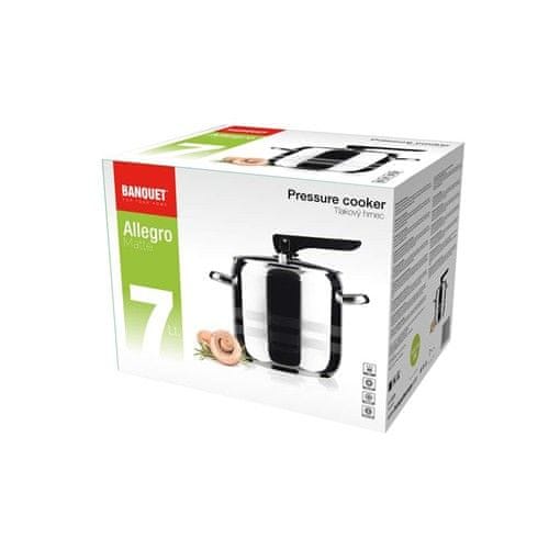 Tlačni lonec iz nerjavečega jekla ALLEGRO Mat 7L se ponaša z dodelano ročico, 2 ventiloma, močno konstrukcijo spodnjega dela in debelino dna 0,6 mm. Pokrov tlačnega kuhalnika vsebuje dodelan glavni in pomožni ventil in ob kuhanju zagotavlja maksimalno varno rokovanje! Celoten opis