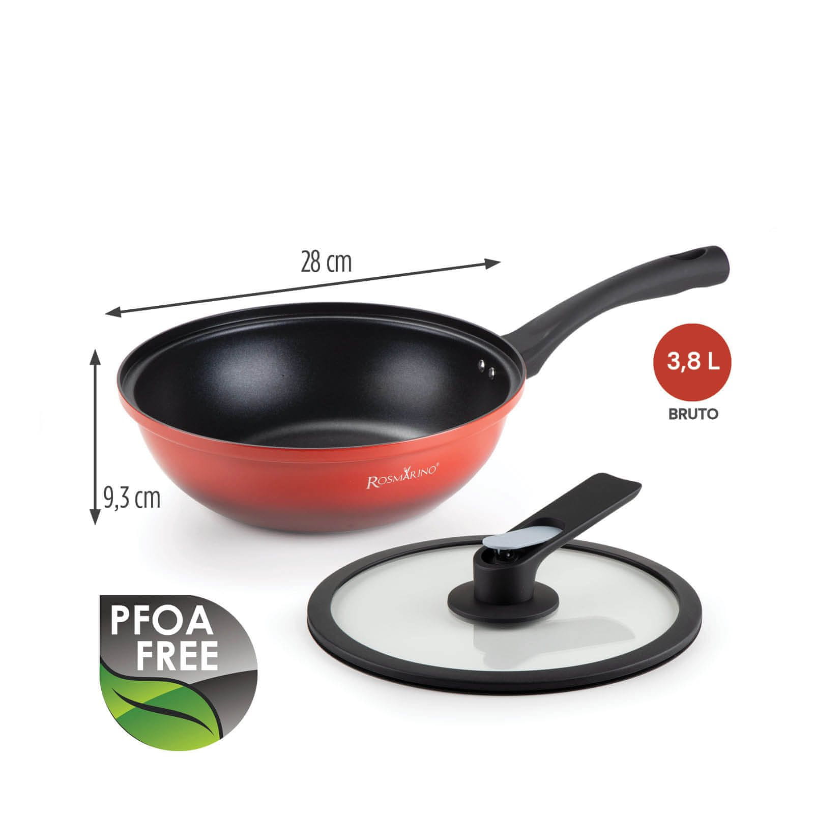 Vok je primeren za uporabo na vseh vrstah kuhalnih plošč, vključno z indukcijsko, saj zagotavlja maksimalno učinkovitost segrevanja. Ima ergonomski ročaj iz bakelita s površino SoftTouch, ki se med kuhanjem ne pregreva. Zaradi neoprijemljivega premaza je čiščenje hitro in enostavno, posodo pa lahko pomivate tudi v pomivalnem stroju (pokrovka ni primerna).