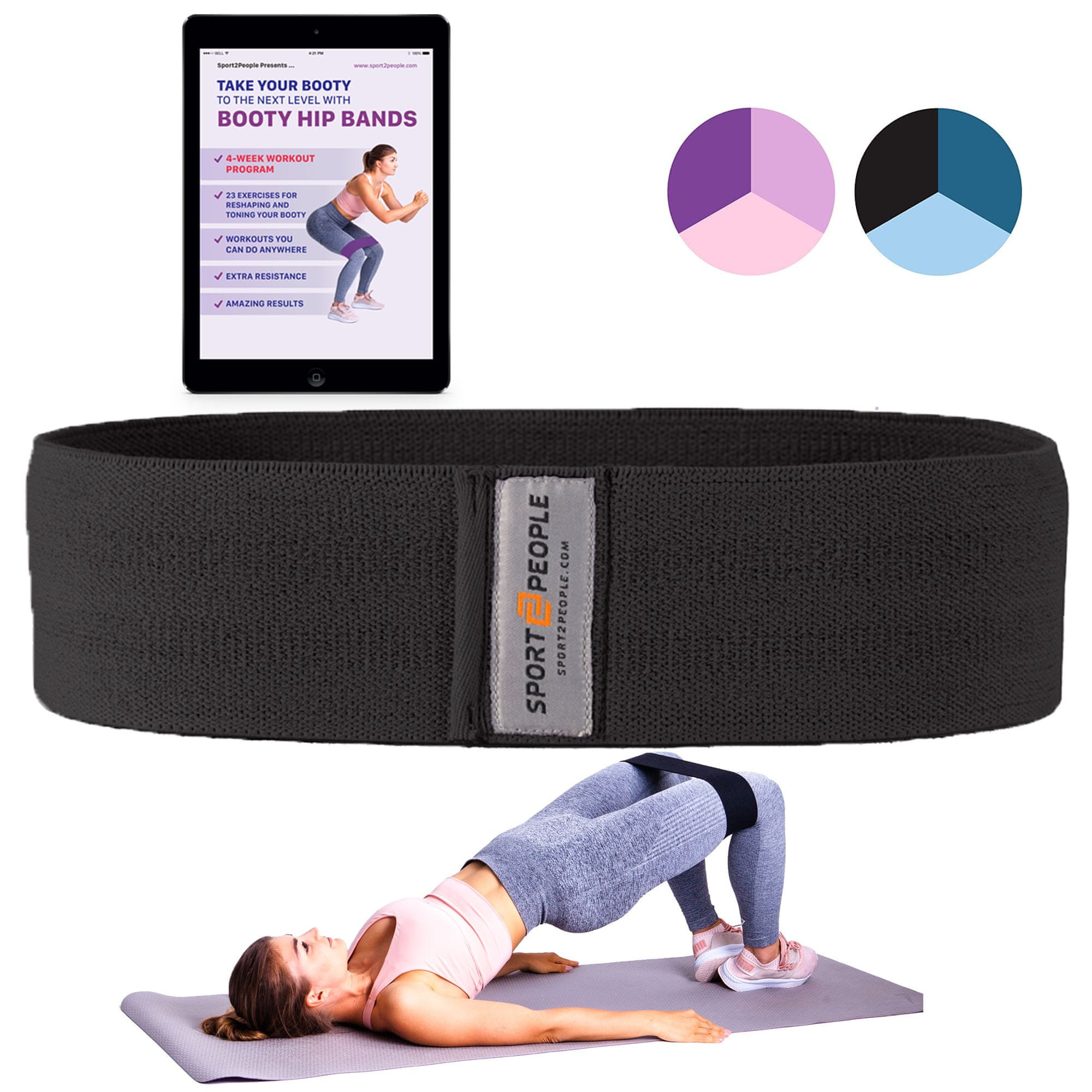 Sport2People Booty Hip Bands – Tekstilne elastike za zadnjico, noge in boke, črna