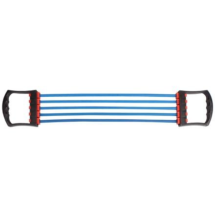 Rubber Expander je univerzalna naprava za vadbo, namenjena krepitvi mišic zgornjega dela telesa – prsnega koša, ramen, rok in hrbta. Uporabljate ga lahko tudi pri rehabilitacijskih vajah. Ta vadbeni pripomoček je sestavljen iz petih odstranljivih gumijastih vrvi iz materiala TPE in ergonomskih plastičnih ročajevadel. Število vrvi uravnava intenzivnost vadbe. Vadite v udobju svojega doma z gumijastim ekspanderjem. – Dolžina gume: 45 cm – Velikost ročajev: 9 × 10 × 2 cm
