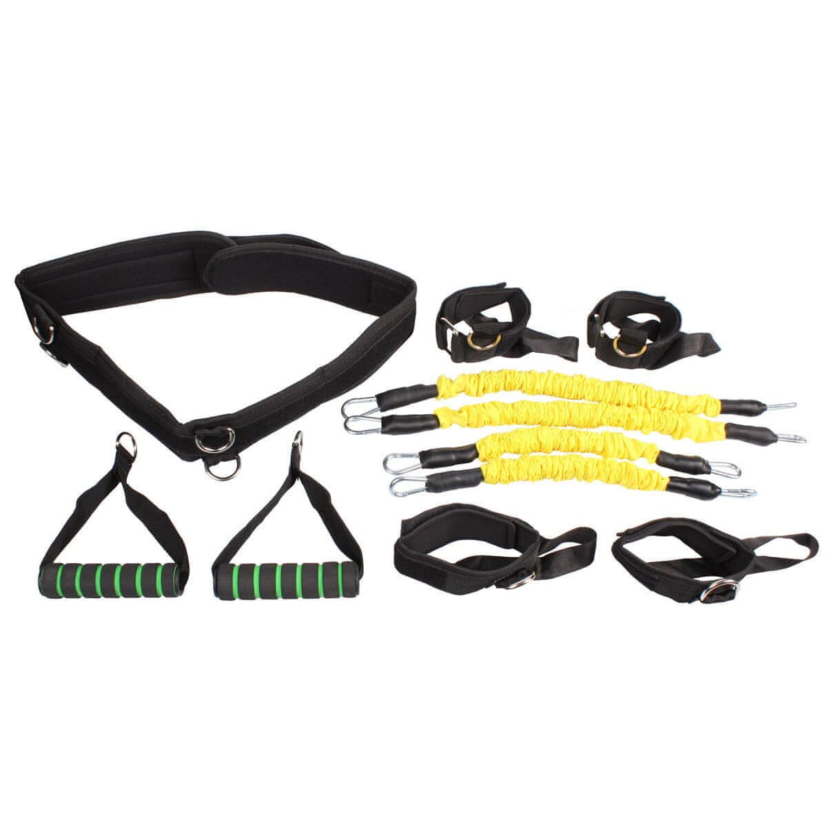Set boksarskih trakov je namenjen učinkovitemu treningu boksarjev in rokoborcev. Vendar bo omogočal tudi vsestranski razvoj drugih športov. Ne glede na to, ali gre za nogomet, hokej, odbojko ali fitnes, bodo ti ekspanzerji močno otežili vadbo, da boste lahko svojo zmogljivost znova še bolj povečali. V paketu so skupaj štirje ekspanzerji v dveh velikostih, 2 ročaja za spodnje okončine, 2 ročaja za zgornje okončine, 2 ročaja in pas za popolno pritrditev ekspanzerjev. Pas in ročaji so pritrjeni z velkro zaponkami, zato jih lahko individualno prilagodite svojim potrebam. S tem pripomočkom za vadbo lahko vadite celotno telo ali pa se osredotočite na posamezne dele mišic. Pripomoček je primeren za moške in ženskeženske. Izbiraj med več barvami in utežmi. Zelene in rumene uporovne gume ustrezajo skupnemu uporu 45 kg, modre in rdeče pa 55 kg upora. Dolžina ekspanderjev: 35 cm in 25 cm V paketu: 4× ekspander, 4× pritrdilna manšeta, 2× ročaj, 1× pasni pas, vrečka z vrvico