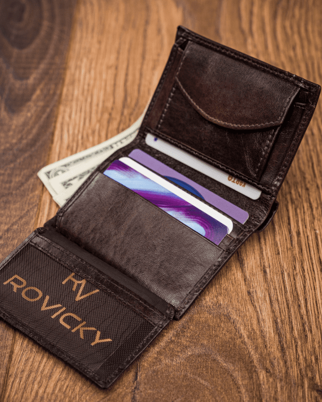 Klasična vertikalna denarnica iz naravnega usnja Celoten opis