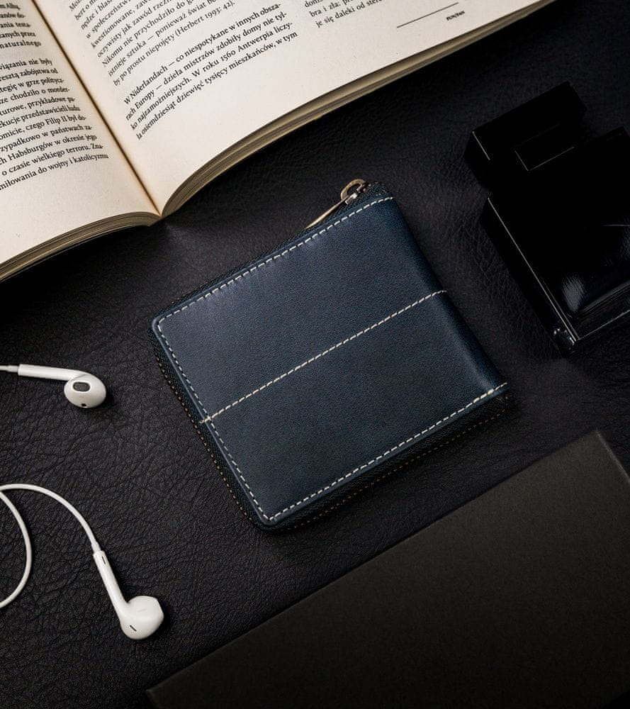 Usnjena moška kvadratna denarnica z retro zadrgo, RFID Celoten opis
